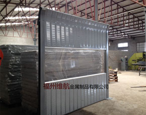 金属隔声屏障:面板及孔板采用镀锌钢板制作,也可根据用户要求采用冷轧板、铝板或不锈钢板。填充材料根据隔声需求选用不同容重的离心玻璃棉板或岩棉板,外敷无碱憎水玻璃布。外表面可进行喷塑处理,有多种颜色可供用户选择。
